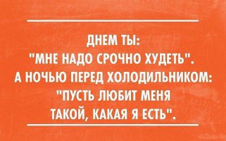 На холодильнике себе написала:ЗАВТРА БРОСАЮ ЖРАТЬ!!!...Каждое утро читаю и думаю:..."хорошо,что завтра,а не сегодня!".